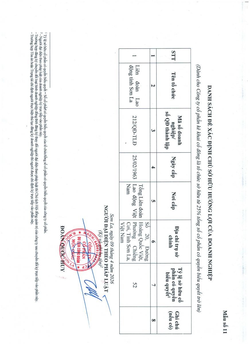 DANH SÁCH ĐỂ XÁC ĐỊNH CHỦ SỞ HỮU HƯỞNG LỢI CỦA DOANH NGHIỆP